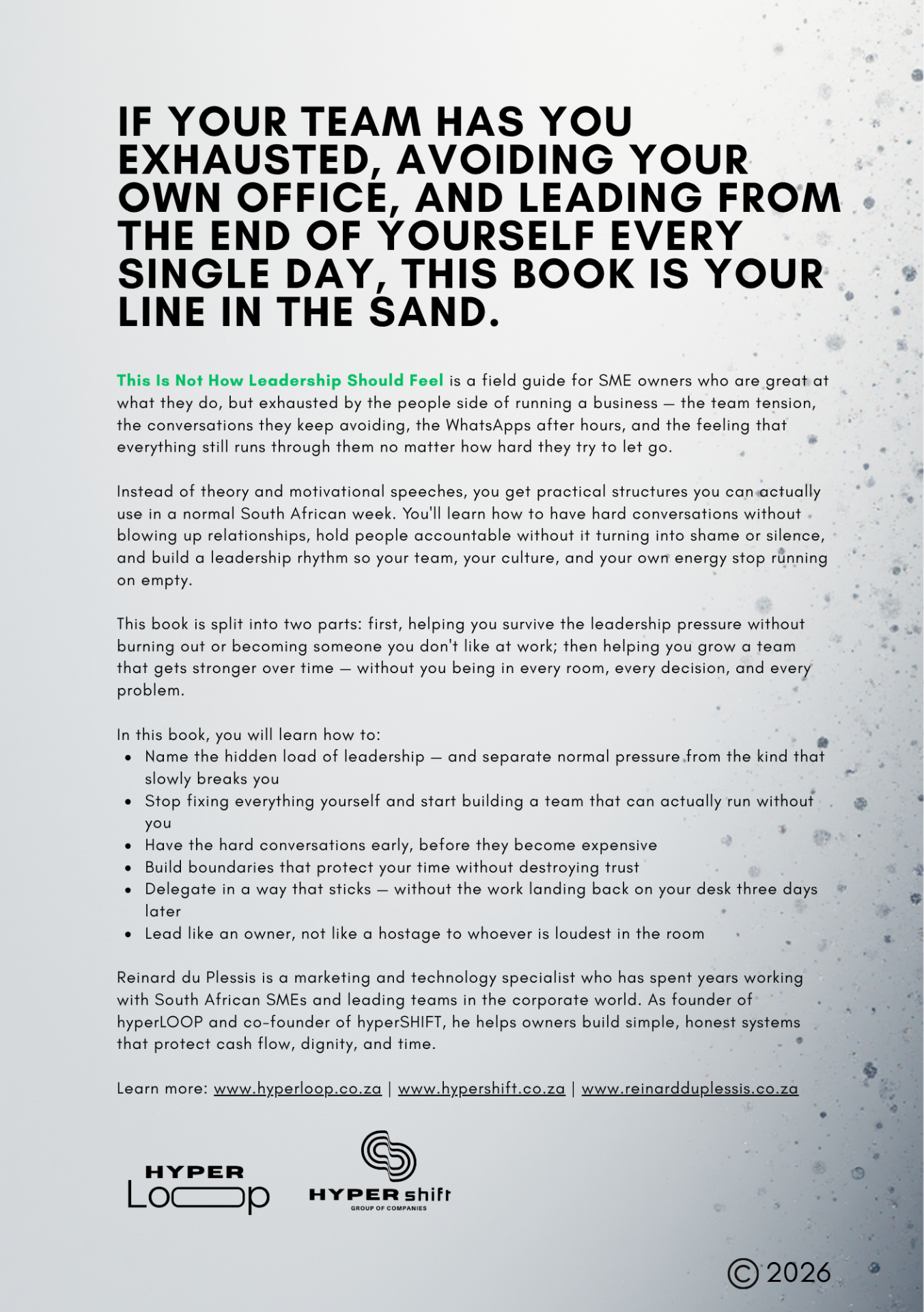 This is not a leadership philosophy book. It's a mirror and a manual. By the time you're done, you'll know how to: