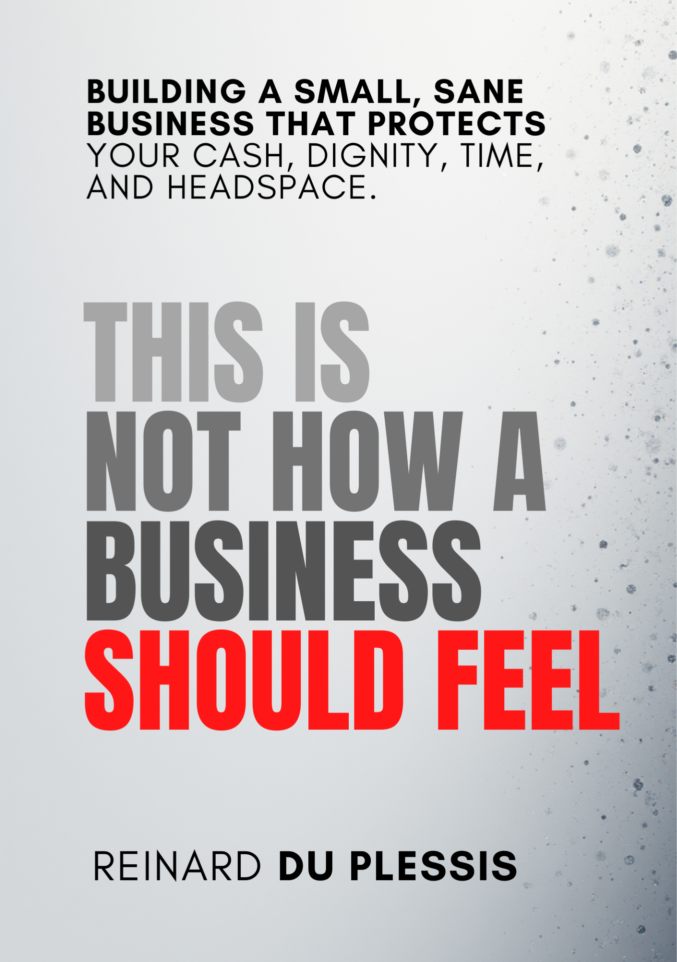 What the book will help you do This is not a theory book; it's a workshop in print. By the time you're done, you'll know how to: Get paid faster – tighten quotes, deposits and follow-ups so month-end isn't a cliff. Stop doing everything yourself – put simple structure and handovers around you so work doesn't live in your head. Build systems that fit a real SME – no corporate jargon, just a few repeatable routines you and your team can actually run. Calm the chaos – bring order to WhatsApps, email, scope creep and "quick favours" so you can breathe again. Make decisions with numbers, not panic – use basic, honest data to see what's working and what's draining you.